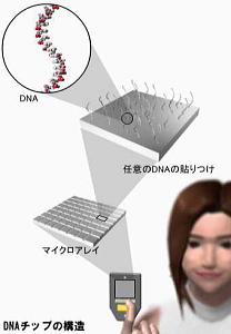 制作コスト 静止画CGイラスト作成の場合は、1点につき5千円〜1万円程度の制作費。Flashアニメーションの作成の場合は1〜5万円程度。Flashアニメーションは内容によって大きく異なるので、ご相談下さい。とくに個人レベルで注文しやすいように低価格で提供致します。 お客様の依頼したCGはどんな目的にも使用できます。プレゼンとパンフレットなど複数の目的で併用することも可能です。転用、二次販売なども可能です。 右図:サンプル2 DNAチップの構造。カタログ用の説明などに。 お気軽にメールでご相談ください。 CG作成サービス: cg@nanoelectronics.jp