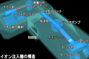不純物添加、つまりドーピングに使われる「イオン注入機」のモデル図。