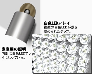 このようにして、一応の白色LED光源が実現すれば、あとは従来の照明器具と同じような方法でパッケージングしてやることでLED照明ができあがる。