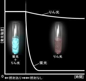 蛍光(fluorescence)」と「りん光(phosphorescence)」という二種類のルミネッセンスに分類することができる。日常生活のなかでは、特に減衰時間の長さに注目して、蛍光とりん光を区別することが多い。