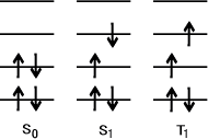 しかし、場合によってはりん光の寿命もマイクロ秒程度と非常に短いこともあるので、蛍光とりん光を寿命の違いで分類することはあまり本質的ではない。蛍光とりん光を正確に区別するためには、電子の励起過程がどのようになっているかを注目する必要がある。専門用語のオンパレードになってしまうが、その詳細について見ていこう。