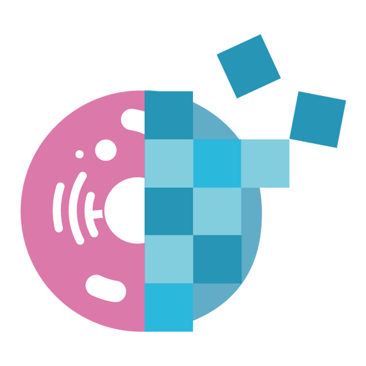 生物細胞と、無細胞分子システムを対比して強調したロゴです。無細胞分子システムは、ボトムアップビルディングなイメージで作成しました。